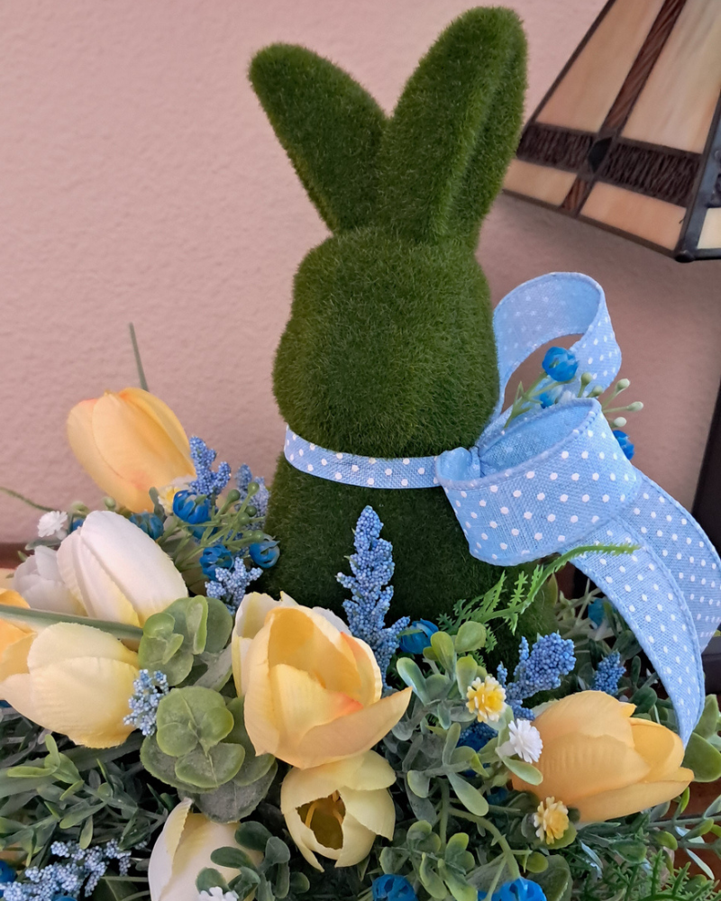 Perfect for Easter decorating, spring displays, or everyday seasonal styling, this bunny arrangement complements farmhouse, cottage, and English garden decor beautifully. A charming accent for tabletops, mantels, shelves, or entryway displays — and a lovely way to celebrate the season with handcrafted beauty.